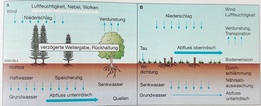 Abb. 60: Veränderung des Landschaftshaushalts bei Waldumwandlung. Quelle: Praxis Geographie 2014, Band 11, S. 36.